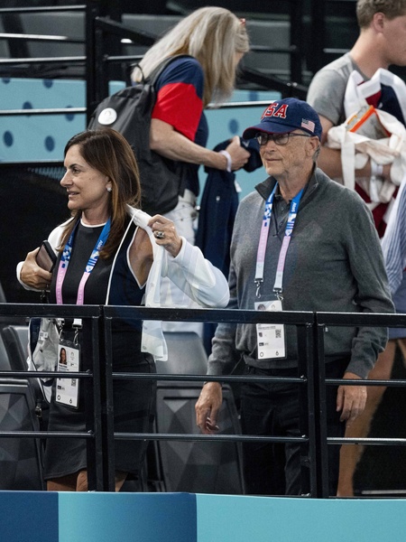 Bill Gates et son amie Paula Hurd - Célébrités assistent aux épreuves de gymnastiques lors des Jeux Olympiques de Paris 2024 (JO) au Palais omnisports Bercy Arena, à Paris le 29 juillet 2024. © Jacovides-Perusseau/Bestimage Celebrities attend the gymnastics events during the Paris 2024 Olympic Games (Olympics) at Palais Omnisports Bercy Arena in Paris on July 29, 2024.