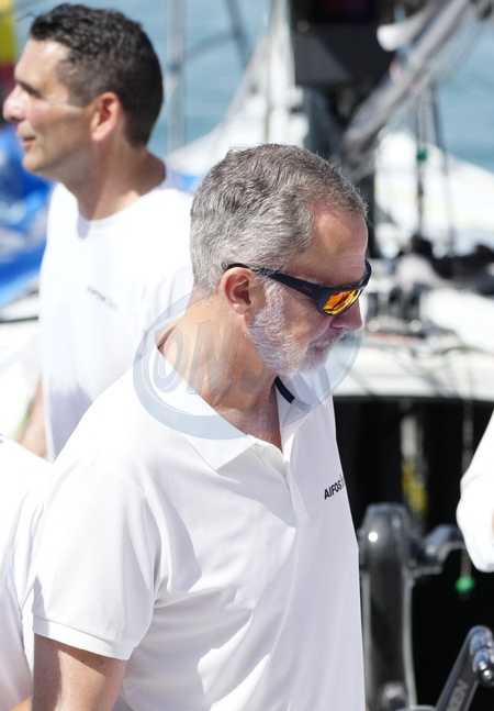 Le roi Felipe VI d'Espagne participe à la 42ème Copa del Rey à Palma de Majorque, le 30 juillet 2024. © Lalo Yasky / Bestimage King Felipe Vi seen on board of the AIFOS the Day 1 of the Copa del Rey sailing trophy during his summer holidays in Mallorca. Palma de Mallorca - July 30, 2024