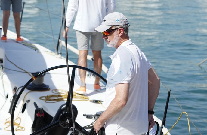 Le roi Felipe VI d'Espagne participe à la 42ème Copa del Rey à Palma de Majorque, le 30 juillet 2024. © Lalo Yasky / Bestimage King Felipe Vi seen on board of the AIFOS the Day 1 of the Copa del Rey sailing trophy during his summer holidays in Mallorca. Palma de Mallorca - July 30, 2024