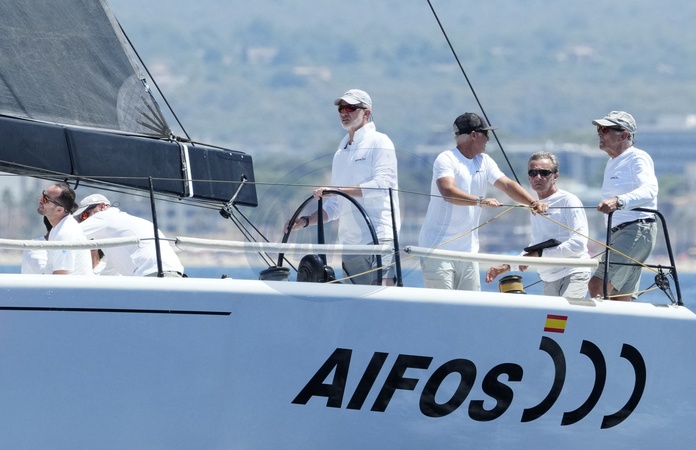 Le roi Felipe VI d'Espagne participe à la 42ème Copa del Rey à Palma de Majorque, le 30 juillet 2024. © Lalo Yasky / Bestimage King Felipe Vi seen on board of the AIFOS the Day 1 of the Copa del Rey sailing trophy during his summer holidays in Mallorca. Palma de Mallorca - July 30, 2024