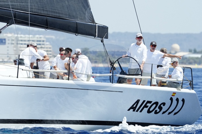 Le roi Felipe VI d'Espagne participe à la 42ème Copa del Rey à Palma de Majorque, le 30 juillet 2024. © Lalo Yasky / Bestimage King Felipe Vi seen on board of the AIFOS the Day 1 of the Copa del Rey sailing trophy during his summer holidays in Mallorca. Palma de Mallorca - July 30, 2024