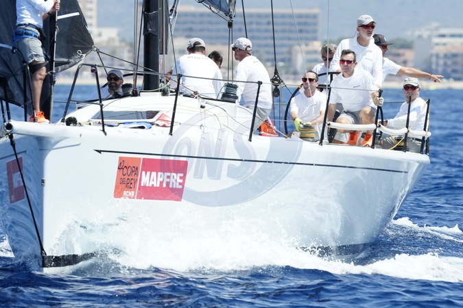 Le roi Felipe VI d'Espagne participe à la 42ème Copa del Rey à Palma de Majorque, le 30 juillet 2024. © Lalo Yasky / Bestimage King Felipe Vi seen on board of the AIFOS the Day 1 of the Copa del Rey sailing trophy during his summer holidays in Mallorca. Palma de Mallorca - July 30, 2024