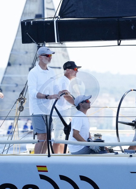 Le roi Felipe VI d'Espagne participe à la 42ème Copa del Rey à Palma de Majorque, le 30 juillet 2024. © Lalo Yasky / Bestimage King Felipe Vi seen on board of the AIFOS the Day 1 of the Copa del Rey sailing trophy during his summer holidays in Mallorca. Palma de Mallorca - July 30, 2024