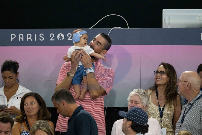 Michael Phelps et sa femme Nicole Johnson - Célébrités assistent aux épreuves de gymnastique lors des Jeux Olympiques de Paris 2024 (JO) au Palais omnisports Bercy Arena, à Paris