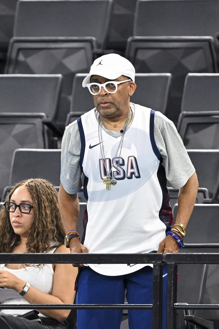 Spike Lee en famille avec sa femme et sa fille ( Tonya Lewis Lee et Satchel Lee) - Célébrités assistent aux épreuves de gymnastique lors des Jeux Olympiques de Paris 2024 (JO) au Palais omnisports Bercy Arena, à Paris, France, le 30 juillet 2024. © Jacovides-Perusseau/Bestimage Spike Lee with his family, wife and daughter (Tonya Lewis Lee and Satchel Lee) Celebrities attend the gymnastics events during the Paris 2024 Olympic Games (Olympics) at Palais Omnisports Bercy Arena in Paris on July 30, 2024.