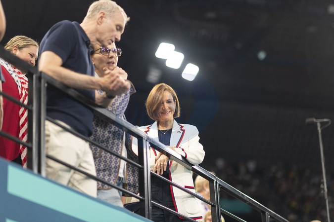 - Célébrités assistent aux épreuves de gymnastique lors des Jeux Olympiques de Paris 2024 (JO) au Palais omnisports Bercy Arena, à Paris, France, le 30 juillet 2024. © Jacovides-Perusseau/Bestimage Celebrities attend the gymnastics events during the Paris 2024 Olympic Games (Olympics) at Palais Omnisports Bercy Arena in Paris on July 30, 2024.