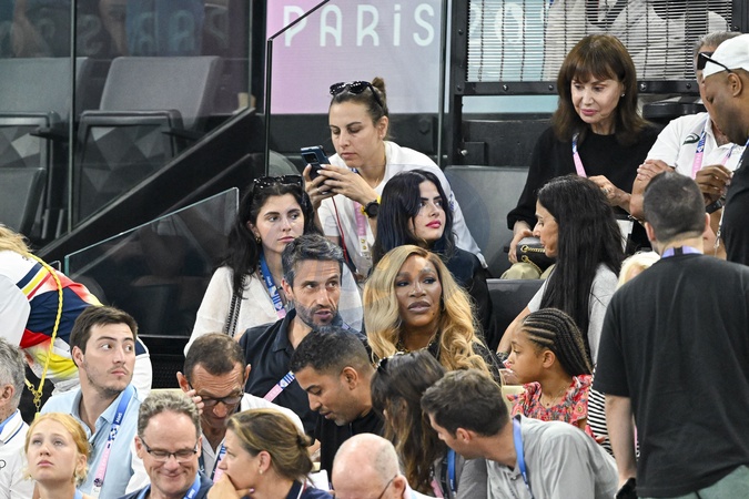 Tony Estanguet et Séréna Williams - Célébrités assistent aux épreuves de gymnastique lors des Jeux Olympiques de Paris 2024 (JO) au Palais omnisports Bercy Arena, à Paris, France, le 30 juillet 2024. © Jacovides-Perusseau/Bestimage Tony Estanguet and Séréna Williams Celebrities attend the gymnastics events during the Paris 2024 Olympic Games (Olympics) at Palais Omnisports Bercy Arena in Paris on July 30, 2024.