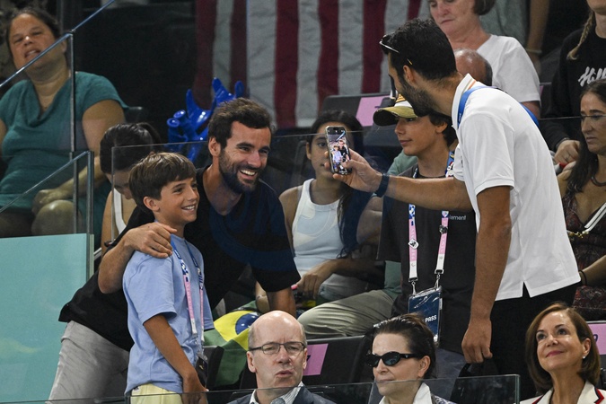 Martin Fourcade - Célébrités assistent aux épreuves de gymnastique lors des Jeux Olympiques de Paris 2024 (JO) au Palais omnisports Bercy Arena, à Paris, France, le 30 juillet 2024. © Jacovides-Perusseau/Bestimage Martin Fourcade Celebrities attend the gymnastics events during the Paris 2024 Olympic Games (Olympics) at Palais Omnisports Bercy Arena in Paris on July 30, 2024.