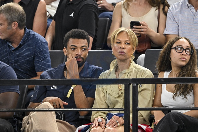 Jackson Lee, Tonya Lewis Lee, Satchel Lee- Célébrités assistent aux épreuves de gymnastique lors des Jeux Olympiques de Paris 2024 (JO) au Palais omnisports Bercy Arena, à Paris, France, le 30 juillet 2024. © Jacovides-Perusseau/Bestimage Celebrities attend the gymnastics events during the Paris 2024 Olympic Games (Olympics) at Palais Omnisports Bercy Arena in Paris on July 30, 2024.