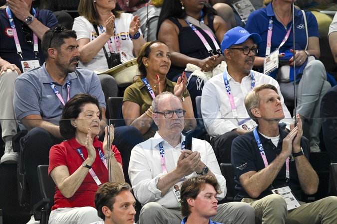 Prince Albert - Célébrités assistent aux épreuves de gymnastique lors des Jeux Olympiques de Paris 2024 (JO) au Palais omnisports Bercy Arena, à Paris, France, le 30 juillet 2024. © Jacovides-Perusseau/Bestimage Prince Albert Celebrities attend the gymnastics events during the Paris 2024 Olympic Games (Olympics) at Palais Omnisports Bercy Arena in Paris on July 30, 2024.