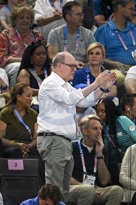 Prince Albert - Célébrités assistent aux épreuves de gymnastique lors des Jeux Olympiques de Paris 2024 (JO) au Palais omnisports Bercy Arena, à Paris, France, le 30 juillet 2024. © Jacovides-Perusseau/Bestimage Prince Albert Celebrities attend the gymnastics events during the Paris 2024 Olympic Games (Olympics) at Palais Omnisports Bercy Arena in Paris on July 30, 2024.