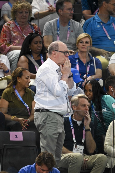 Prince Albert - Célébrités assistent aux épreuves de gymnastique lors des Jeux Olympiques de Paris 2024 (JO) au Palais omnisports Bercy Arena, à Paris, France, le 30 juillet 2024. © Jacovides-Perusseau/Bestimage Prince Albert Celebrities attend the gymnastics events during the Paris 2024 Olympic Games (Olympics) at Palais Omnisports Bercy Arena in Paris on July 30, 2024.