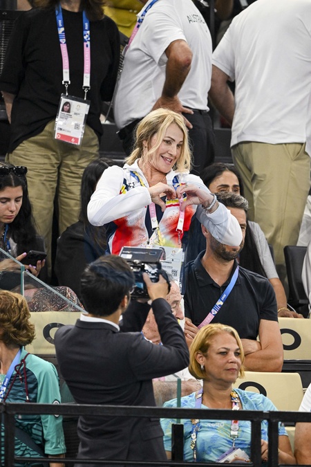 Nadia Comăneci - Célébrités assistent aux épreuves de gymnastique lors des Jeux Olympiques de Paris 2024 (JO) au Palais omnisports Bercy Arena, à Paris, France, le 30 juillet 2024. © Jacovides-Perusseau/Bestimage Nadia Comăneci Celebrities attend the gymnastics events during the Paris 2024 Olympic Games (Olympics) at Palais Omnisports Bercy Arena in Paris on July 30, 2024.