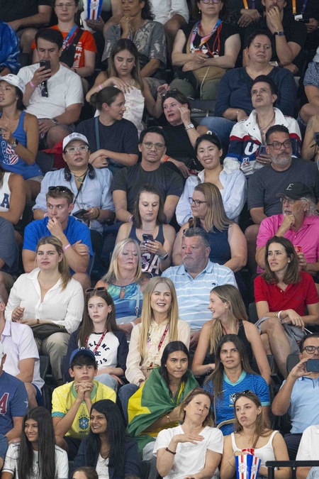 - Célébrités assistent aux épreuves de gymnastique lors des Jeux Olympiques de Paris 2024 (JO) au Palais omnisports Bercy Arena, à Paris, France, le 30 juillet 2024. © Jacovides-Perusseau/Bestimage Celebrities attend the gymnastics events during the Paris 2024 Olympic Games (Olympics) at Palais Omnisports Bercy Arena in Paris on July 30, 2024.