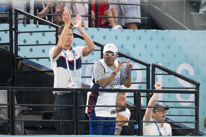 - Célébrités assistent aux épreuves de gymnastique lors des Jeux Olympiques de Paris 2024 (JO) au Palais omnisports Bercy Arena, à Paris, France, le 30 juillet 2024. © Jacovides-Perusseau/Bestimage Celebrities attend the gymnastics events during the Paris 2024 Olympic Games (Olympics) at Palais Omnisports Bercy Arena in Paris on July 30, 2024.