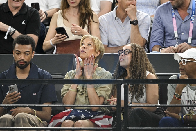 Célébrités assistent aux épreuves de gymnastique lors des Jeux Olympiques de Paris 2024 (JO) au Palais omnisports Bercy Arena, à Paris