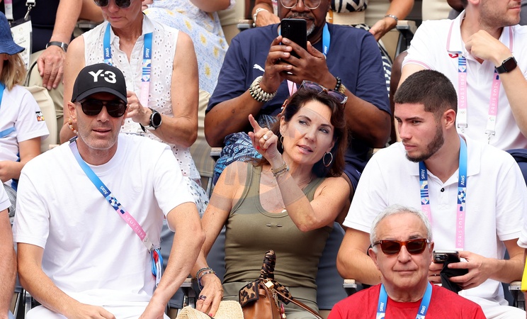 Zinedine Zidane avec sa femme Véronique et son fils Théo - Célébrités assistent à la victoire de Rafael Nadal et Carlos Alcaraz face à T. Griekspoor et W. Koolhof lors des Jeux Olympiques de Paris2024 (JO) le 30 juillet 2024. © Jacovides-Perusseau/Bestimage Celebrities attend Rafael Nadal and Carlos Alcaraz's victory over T. Griekspoor and W. Koolhof at the Paris2024 Olympic Games (Olympics) on July 30, 2024