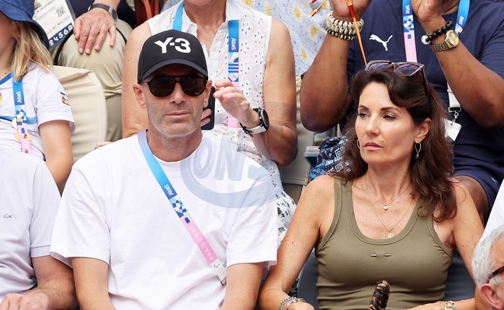 Zinedine Zidane avec sa femme Véronique - Célébrités assistent à la victoire de Rafael Nadal et Carlos Alcaraz face à T. Griekspoor et W. Koolhof lors des Jeux Olympiques de Paris2024 (JO) le 30 juillet 2024. © Jacovides-Perusseau/Bestimage Celebrities attend Rafael Nadal and Carlos Alcaraz's victory over T. Griekspoor and W. Koolhof at the Paris2024 Olympic Games (Olympics) on July 30, 2024