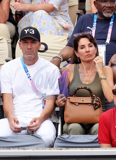 Zinedine Zidane avec sa femme Véronique - Célébrités assistent à la victoire de Rafael Nadal et Carlos Alcaraz face à T. Griekspoor et W. Koolhof lors des Jeux Olympiques de Paris2024 (JO) le 30 juillet 2024. © Jacovides-Perusseau/Bestimage Celebrities attend Rafael Nadal and Carlos Alcaraz's victory over T. Griekspoor and W. Koolhof at the Paris2024 Olympic Games (Olympics) on July 30, 2024