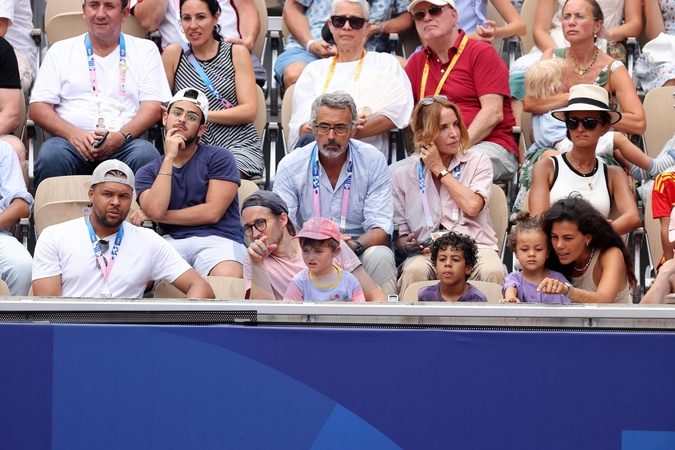 Jo-Wilfried Tsonga en famille - Célébrités assistent à la victoire de Rafael Nadal et Carlos Alcaraz face à T. Griekspoor et W. Koolhof lors des Jeux Olympiques de Paris2024 (JO) le 30 juillet 2024. © Jacovides-Perusseau/Bestimage Celebrities attend Rafael Nadal and Carlos Alcaraz's victory over T. Griekspoor and W. Koolhof at the Paris2024 Olympic Games (Olympics) on July 30, 2024