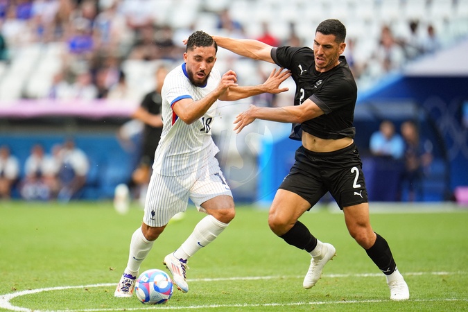 Rayan Cherki (France) and Michael Boxall (New Zealand), Football , France vs New Zealand during the Olympic Games Paris 2024. Photo Norbert Scanella - DPPI Media / Panoramic