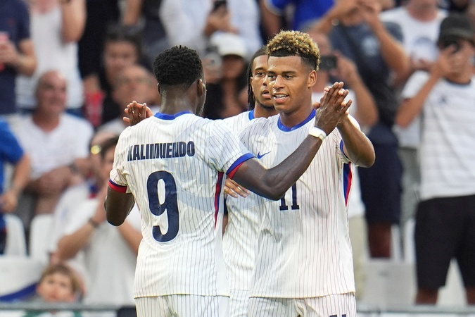 Désiré Doué (France) and Arnaud Kalimuendo (France), Football , France vs New Zealand during the Olympic Games Paris 2024. Photo Norbert Scanella - DPPI Media / Panoramic