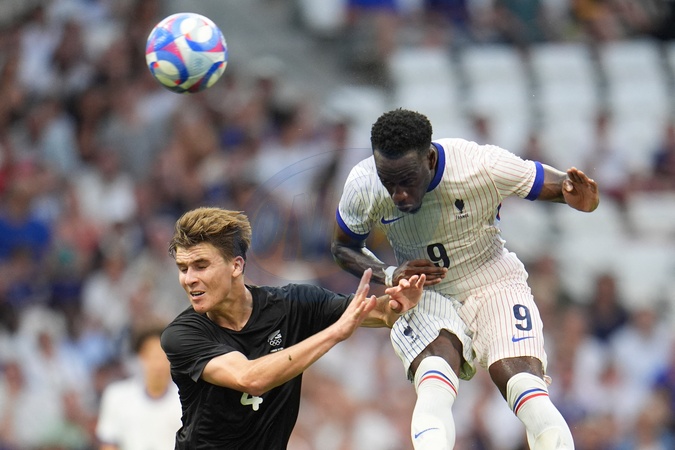Arnaud Kalimuendo (France) and Tyler Bindon (New Zealand), Football , France vs New Zealand during the Olympic Games Paris 2024. Photo Norbert Scanella - DPPI Media / Panoramic