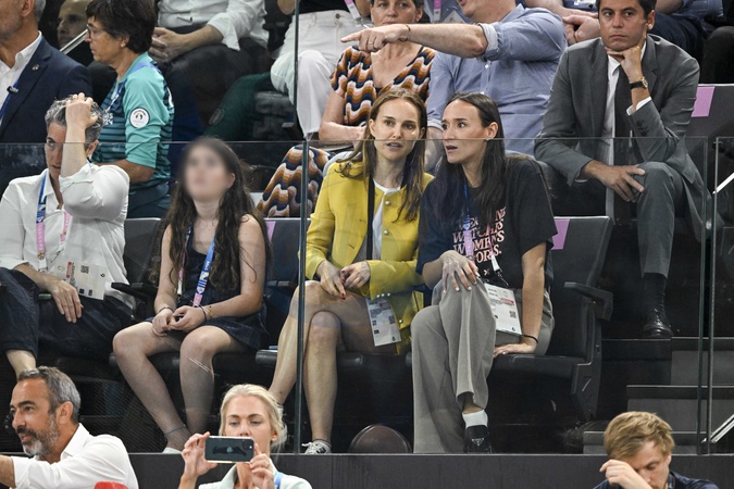 Natalie Portman et Gabriel Attal - Célébrités assistent aux épreuves de gymnastiques lors des Jeux Olympiques de Paris 2024 (JO) au Palais omnisports Bercy Arena, à Paris, France, le 30 juillet 2024. © Jacovides-Perusseau/Bestimage Juliette Binoche and Nathalie Portman, Gabriel Attal Celebrities attend the gymnastics events during the Paris 2024 Olympic Games (Olympics) at Palais Omnisports Bercy Arena in Paris on July 30, 2024.