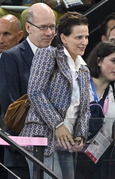 Juliette Binoche - Célébrités assistent aux épreuves de gymnastiques lors des Jeux Olympiques de Paris 2024 (JO) au Palais omnisports Bercy Arena, à Paris, France, le 30 juillet 2024. © Jacovides-Perusseau/Bestimage Juliette Binoche and Nathalie Portman, Gabriel Attal Celebrities attend the gymnastics events during the Paris 2024 Olympic Games (Olympics) at Palais Omnisports Bercy Arena in Paris on July 30, 2024.