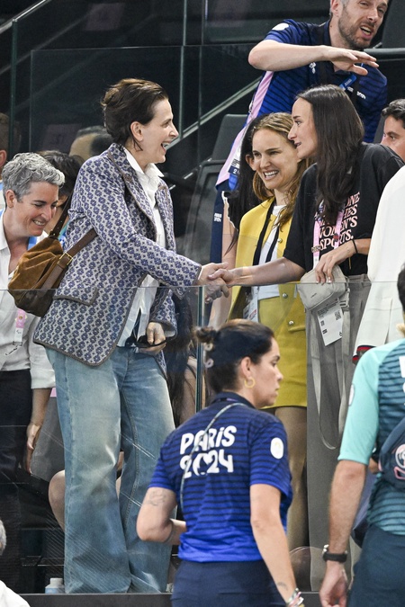 Juliette Binoche, Natalie Portman - Célébrités assistent aux épreuves de gymnastiques lors des Jeux Olympiques de Paris 2024 (JO) au Palais omnisports Bercy Arena, à Paris, France, le 30 juillet 2024. © Jacovides-Perusseau/Bestimage Juliette Binoche and Nathalie Portman, Gabriel Attal Celebrities attend the gymnastics events during the Paris 2024 Olympic Games (Olympics) at Palais Omnisports Bercy Arena in Paris on July 30, 2024.