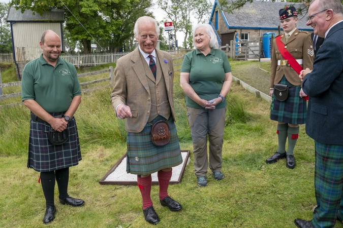 King Charles III during his visit to the Forsinard Flows Visitor Centre in Forsinard, Highland, which was recently given World Heritage Site status, to meet with Flow Country Partnership staff, local residents, families and young people. Picture date: Wednesday July 31, 2024. PA Photo. See PA story ROYAL Charles. Photo credit should read: Jane, Credit:Jane Barlow / Avalon