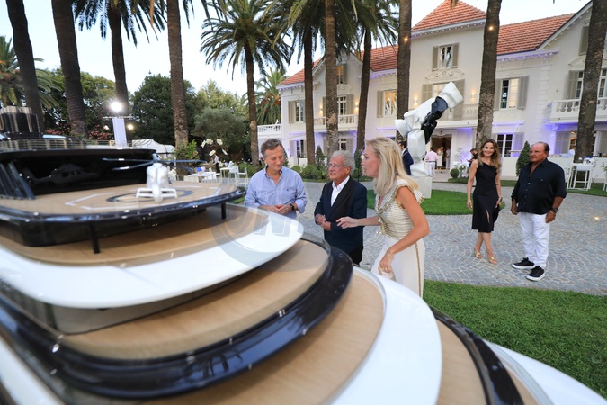 Exclusif - Frank Binder, Olivier Dassault, la princesse Camilla de Bourbon des Deux-Siciles - Soirée privée chez le prince Charles et la princesse Camilla de Bourbon des Deux-Siciles au Château de Saint-Tropez à Saint-Tropez, à l'occasion de la présentation du super yacht résidentiel Ulyssia Ce bateau, qui fera 324 mètres de long, soit 55 mètres de plus que le Titanic, sillonnera les mers à partir de 2028, et pourra accueillir 132 résidences privées dans un luxe extraordinaire. Le 30 juillet 2024 © Franz Chavaroche / Bestimage Exclusive - For Germany Call for price - Private party at the Prince and Princess of Bourbon of the Two Sicilies in Saint-Tropez, on the occasion of the presentation of the super residential yacht Ulyssia. This ship, which will be 324 meters long, 55 meters longer than the Titanic, will sail the seas from 2028, and will be able to accommodate 132 private residences in extraordinary luxury. On July 30th 2024