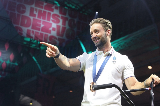 Anthony Jeanjean, médaille de bronze en BMX freestyle au Club France à la Grande Halle de La Villette lors des Jeux Olympiques Paris 2024