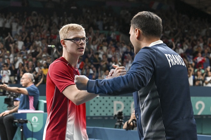 Félix Lebrun se qualifie pour les demi-finales aux épreuves de tennis de table lors des Jeux Olympiques de Paris 2024 (JO) à l'Arena Paris Sud