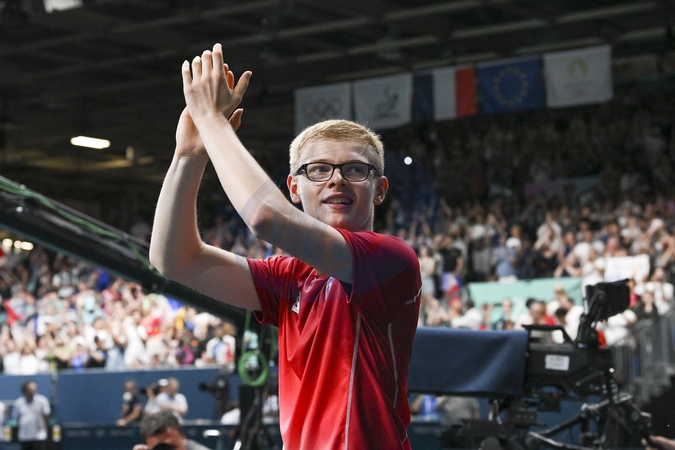 Félix Lebrun se qualifie pour les demi-finales aux épreuves de tennis de table lors des Jeux Olympiques de Paris 2024 (JO) à l'Arena Paris Sud