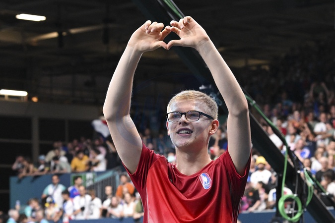 Félix Lebrun se qualifie pour les demi-finales aux épreuves de tennis de table lors des Jeux Olympiques de Paris 2024 (JO) à l'Arena Paris Sud
