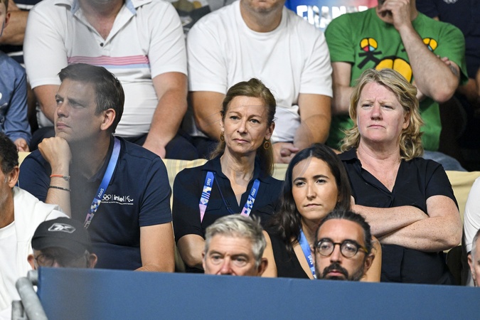 Anne Gravoin - Les célébrités assistent à la victoire du français Félix Lebrun en quart de finale des épreuves de tennis de table lors des Jeux Olympiques de Paris 2024 (JO) à l'Arena Paris Sud, à Paris, France, le 1er août 2024. © Jacovides-Perusseau/Bestimage Celebrities attend the victory of Frenchman Félix Lebrun in the quarterfinals of the table tennis events during the Paris 2024 Olympic Games (Olympics) at Arena Paris Sud in Paris, France, August 1, 2024.
