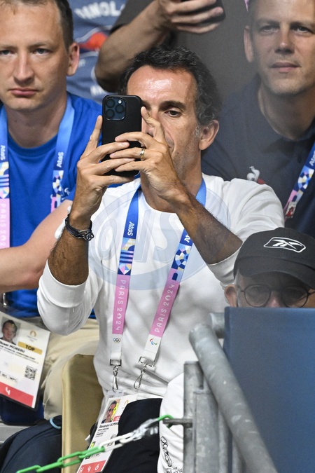 Alexandre Bompard - Les célébrités assistent à la victoire du français Félix Lebrun en quart de finale des épreuves de tennis de table lors des Jeux Olympiques de Paris 2024 (JO) à l'Arena Paris Sud, à Paris, France, le 1er août 2024. © Jacovides-Perusseau/Bestimage Celebrities attend the victory of Frenchman Félix Lebrun in the quarterfinals of the table tennis events during the Paris 2024 Olympic Games (Olympics) at Arena Paris Sud in Paris, France, August 1, 2024.