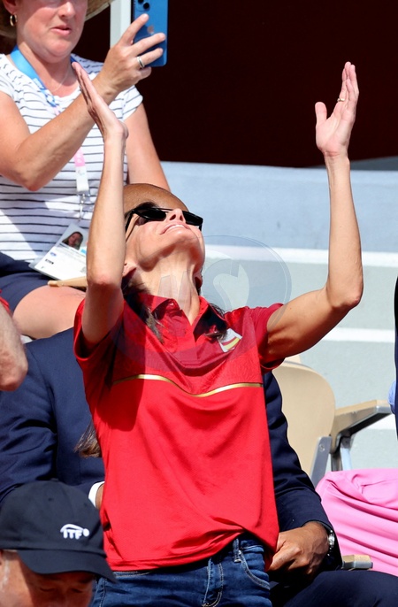 La reine Letizia d’Espagne assiste aux 1/4 de finale de tennis entre Carlos Alcaraz et Tommy Paul lors des Jeux Olympiques de Paris2024 (JO) à Roland Garros