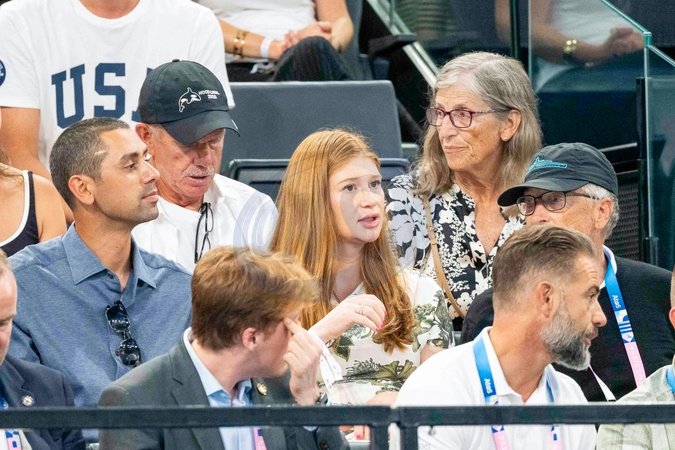 Bill Gates avec sa fille Jennifer Gates et son mari le cavalier égyptien Nayel Nassar - Les célébrités assistent aux épreuves de Gymnastique artistique féminine, finale du concours général lors des Jeux Olympiques de Paris 2024 (JO) au Palais omnisports Bercy Arena, à Paris, France, le 1er août 20241. © Jacovides-Perusseau/Bestimage Celebrities attend the Women's Artistic Gymnastics All-Around Final during the Paris 2024 Olympic Games (Olympics) at Palais Omnisports Bercy Arena in Paris, France, August 1, 20241.