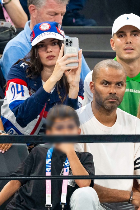 Kendall Jenner et Tony Parker - Les célébrités assistent aux épreuves de Gymnastique artistique féminine, finale du concours général lors des Jeux Olympiques de Paris 2024 (JO) au Palais omnisports Bercy Arena, à Paris, France, le 1er août 20241. © Jacovides-Perusseau/Bestimage Celebrities attend the Women's Artistic Gymnastics All-Around Final during the Paris 2024 Olympic Games (Olympics) at Palais Omnisports Bercy Arena in Paris, France, August 1, 20241.