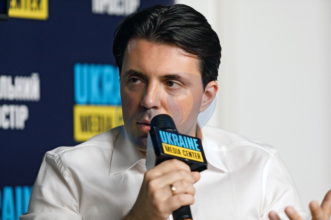 KYIV, UKRAINE - JULY 26, 2024 - Chairman of the Management Board of the National Power Company Ukrenergo Volodymyr Kudrytskyi holds a briefing on the topic: " The Situation With Power Grid: Why It Became Easier and How to Prepare for Winter" at the Ukraine Media Center, Kyiv, capital of Ukraine., Credit:Kirill Chubotin / Avalon