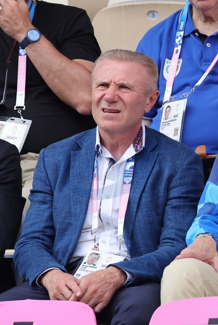 Sergueï Bubka - Les célébrités assistent à l'épreuve de tennis du quart de finale Novak Djokovic contre Stefanos Tsitsipas lors des Jeux Olympiques de Paris 2024 (JO) à Roland Garros, à Paris, France, le 1er août 2024. © Jacovides-Perusseau/Bestimage Celebrities attend the quarterfinal tennis match between Novak Djokovic and Stefanos Tsitsipas during the Paris 2024 Olympic Games (Olympics) at Roland Garros in Paris, France, on August 1, 2024.