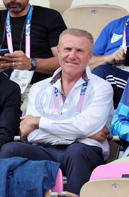 Sergueï Bubka - Les célébrités assistent à l'épreuve de tennis du quart de finale Novak Djokovic contre Stefanos Tsitsipas lors des Jeux Olympiques de Paris 2024 (JO) à Roland Garros, à Paris, France, le 1er août 2024. © Jacovides-Perusseau/Bestimage Celebrities attend the quarterfinal tennis match between Novak Djokovic and Stefanos Tsitsipas during the Paris 2024 Olympic Games (Olympics) at Roland Garros in Paris, France, on August 1, 2024.
