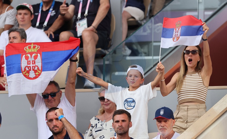 Jelena Djokovic Gwiazdy biorą udział w ćwierćfinałowym meczu tenisowym Novaka Djokovica przeciwko Stefanosowi Tsitsipasowi podczas Igrzysk Olimpijskich 2024 w Paryżu (OG) na stadionie Roland Garros