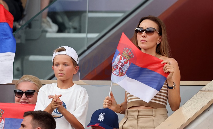 Jelena Djokovic Gwiazdy biorą udział w ćwierćfinałowym meczu tenisowym Novaka Djokovica przeciwko Stefanosowi Tsitsipasowi podczas Igrzysk Olimpijskich 2024 w Paryżu (OG) na stadionie Roland Garros