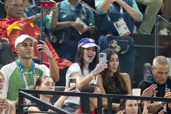 Kendall Jenner i jej były chłopak Devin Booker biorą udział w zawodach kobiecej gimnastyki artystycznej, wszechstronnym finale podczas Igrzysk Olimpijskich w Paryżu w 2024 r. w Palais omnisports Bercy Arena w Paryżu.