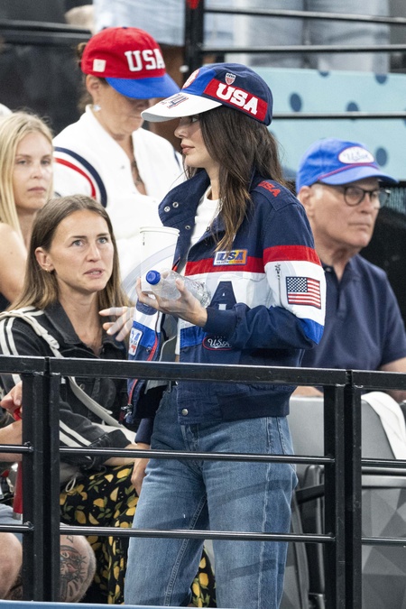 Kendall Jenner i jej były chłopak Devin Booker biorą udział w zawodach kobiecej gimnastyki artystycznej, wszechstronnym finale podczas Igrzysk Olimpijskich w Paryżu w 2024 r. w Palais omnisports Bercy Arena w Paryżu.