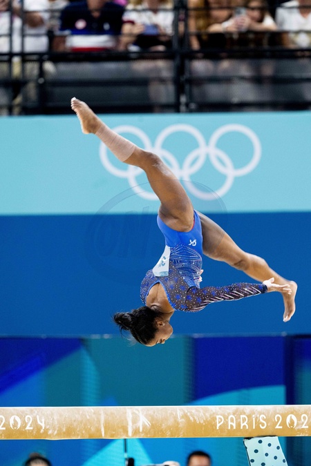 Simone Biles devant son compagnon Jonathan Owens et ses parents Nellie Biles et Ronald Biles - Les célébrités assistent aux épreuves de Gymnastique artistique féminine, finale du concours général lors des Jeux Olympiques de Paris 2024 (JO) au Palais omnisports Bercy Arena, à Paris, France, le 1er août 2024. © Jacovides-Perusseau/Bestimage Simone Biles in front of her partner Jonathan Owens and her parents Nellie Biles and Ronald Biles - Celebrities attend the Women's Artistic Gymnastics All-Around Final during the Paris 2024 Olympic Games (Olympics) at Palais Omnisports Bercy Arena in Paris, France, August 1, 2024