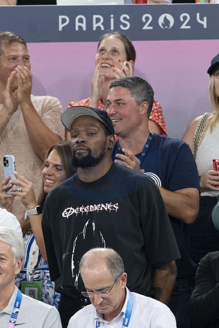Kevin Durant - Les célébrités assistent aux épreuves de Gymnastique artistique féminine, finale du concours général lors des Jeux Olympiques de Paris 2024 (JO) au Palais omnisports Bercy Arena, à Paris, France, le 1er août 2024. © Jacovides-Perusseau/Bestimage Celebrities attend the Women's Artistic Gymnastics All-Around Final during the Paris 2024 Olympic Games (Olympics) at Palais Omnisports Bercy Arena in Paris, France, August 1, 2024